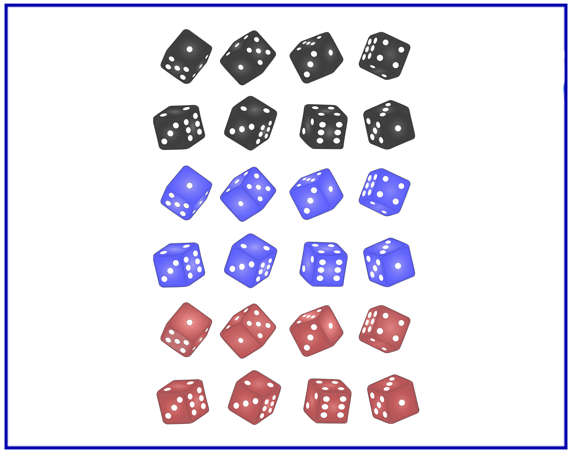 Need to figure out steps and turns as well as how much another person or Computer needs to make actions, well you are are in luck because the variety of dice are animatable and usable in variety of ways and methods.